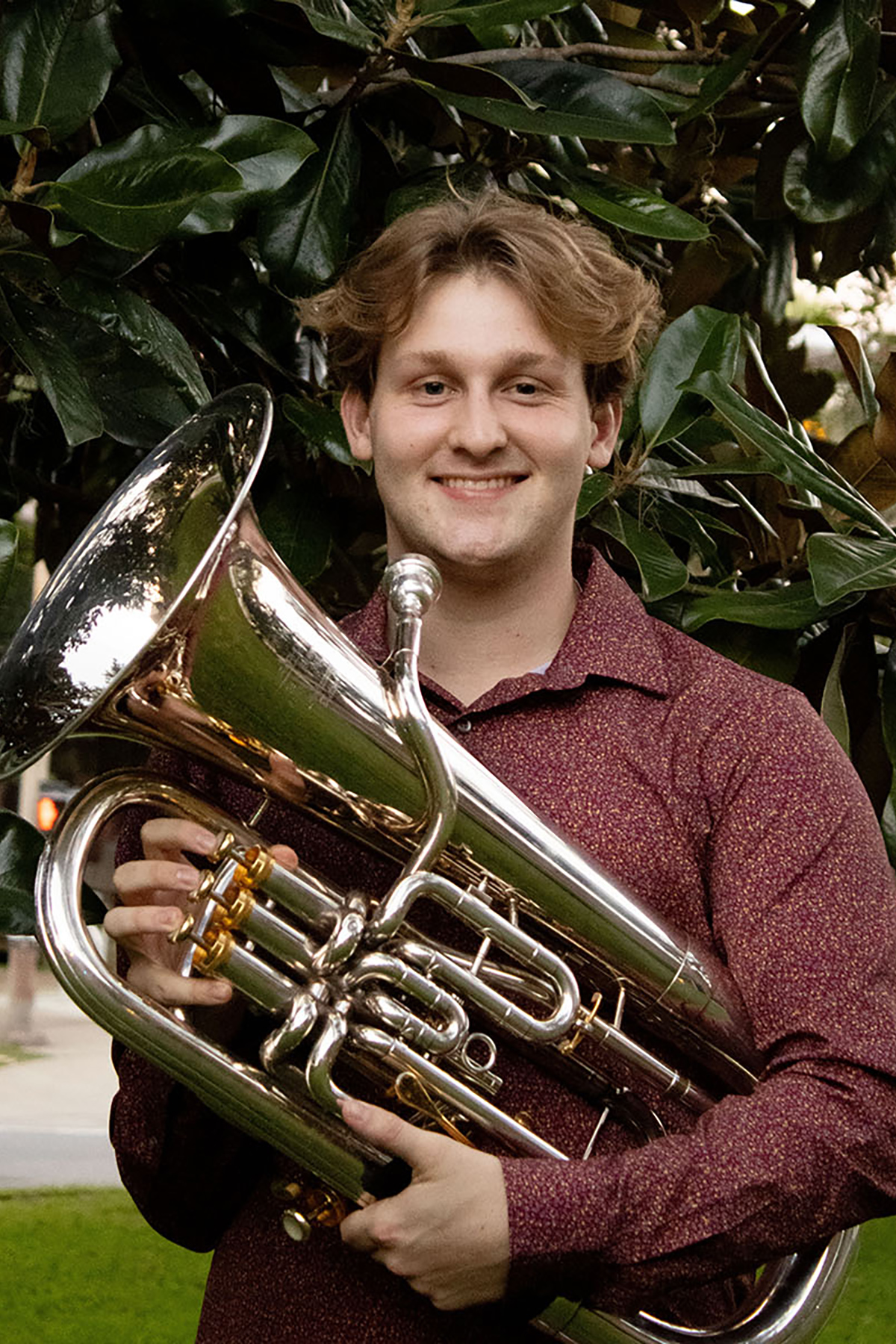 Cayden Miller, a second-year Master of Music student in music performance and a graduate teaching assistant in the Tuba & Euphonium Studio, won the highly competitive audition for the Navy Band’s premier wind ensemble, based in Washington, D.C. The ensemble is recognized for its artistry and musical versatility, performing a wide repertoire and representing the Navy and the nation at public concerts and major events for more than 95 years.